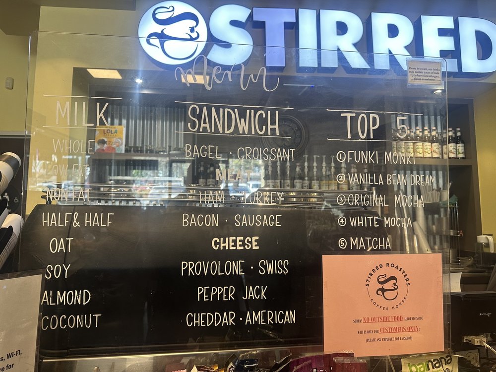 Stirred Roasters Coffee House, located in Cerritos, CA, offers a cozy atmosphere with ample seating for studying or catching up with friends. The menu boasts a variety of hot and iced coffee drinks, including lattes, mochas, and cold brews, catering to all preferences. Customers rave about the quality of the coffee and the welcoming ambiance, making it a go-to spot for locals. The friendly staff, including baristas like Melanie, ensure a pleasant experience and are knowledgeable about the menu offerings. In addition to the coffee selection, Stirred Roasters also offers a range of pastries and breads for a quick snack or light meal. With a focus on creating a welcoming and comfortable environment, Stirred Roasters Coffee House is a must-visit destination in the area for coffee enthusiasts and those looking for a place to relax and unwind.